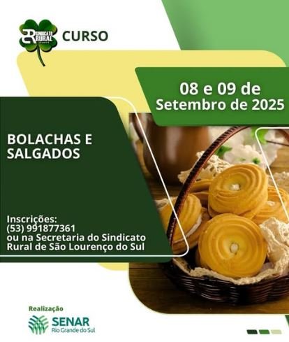 👉 Nos dias 08 e 09 de setembro, acontece o Curso de Bolachas e Salgados em São Lourenço do Sul.Uma experiência deliciosa para quem quer aprender novas técnicas e receitas com toda a qualidade Senar! 📌 Conteúdo Programático✅ Higiene e saúde na manipulação de alimentos✅ Segurança e prevenção de acidentes✅ Cuidados com o meio ambiente✅ […]